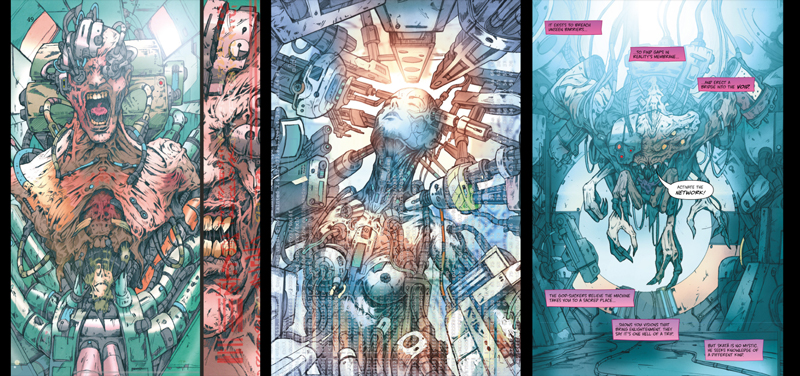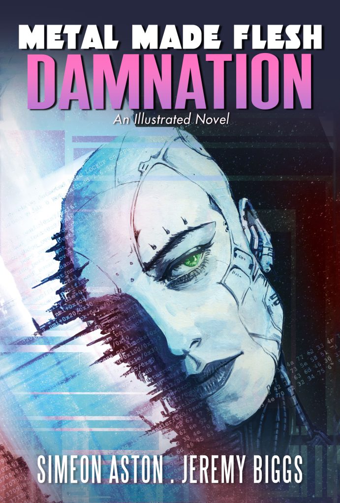 Damnation is the forth book in the Metal Made Flesh franchise from writer Jeremy Biggs and artist Simeon Aston. Metal Made Flesh mixes fast paced prose with gorgeous cyberpunk art. The series mashes together Science-fiction, Cyberpunk, Space Opera and Fantasy into an epic genre-defying work.